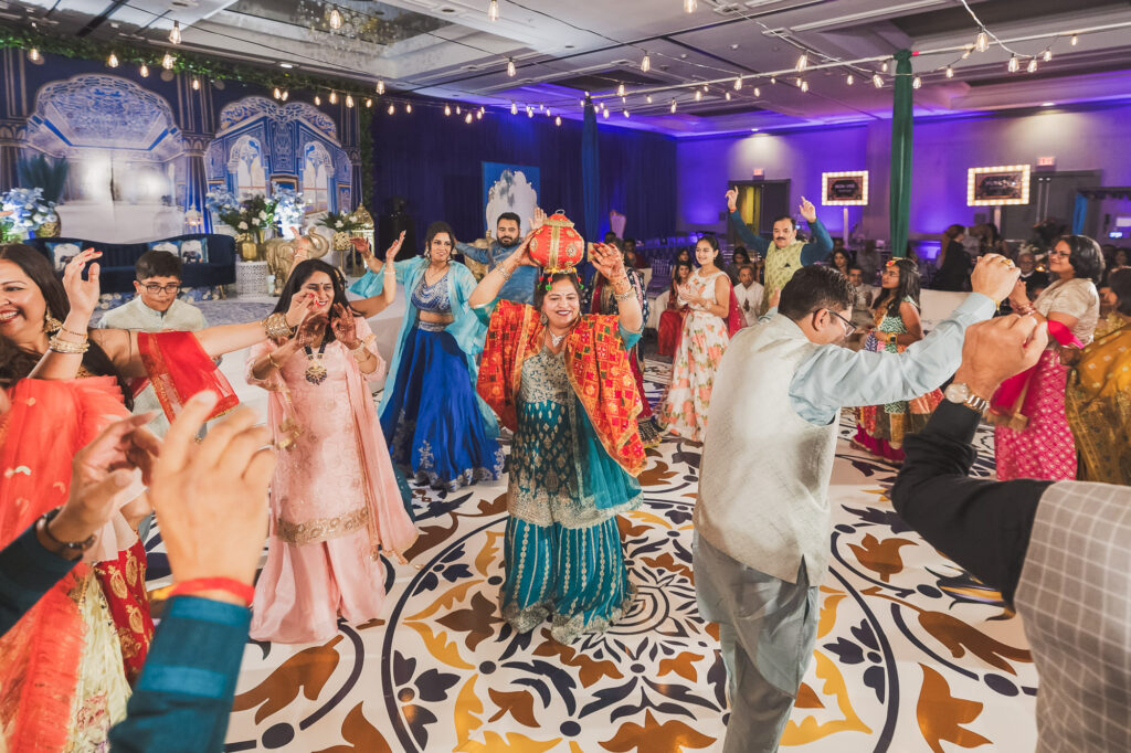 The Sangeet on Friday night was a high-energy celebration that brought together friends and family for a night of performances, games, and dancing. The highlight of the evening was the Coke Game, a playful activity that had everyone cheering. Deepak’s Punjabi heritage was celebrated with a lively Jaggo ceremony, where family members danced with decorated pots. We ensured that the transitions between activities were seamless, allowing guests to fully enjoy the evening without delays.